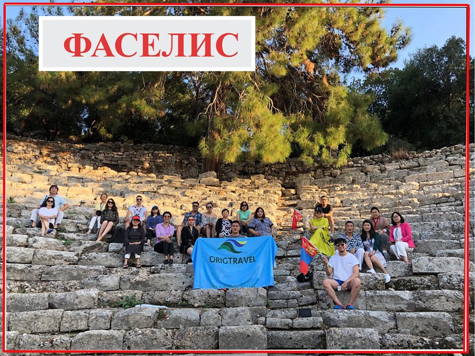 Биднийг нийт 10 цагийн нислэгийн дараа Анталья хотод газардахад хөтөч Наагий, Туркийн аялал жуулчлалын яамнаас томилогдсон хөтөч Ведат нар угтан авсан юм. Турк улс аялал жуулчлалынхаа салбарт ихэд анхаарч, гадаадын аялагчдад зориулан Аялал жуулчлалын яамнаасаа тусгай хөтөч гаргаж өгдөг. Ийнхүү бид Анталья хотоос баруун тийш үзэсгэлэнт байгаль, Газар дундын тэнгисийн эргийг даган явсаар “Акка” хэмээх зочид буудалд байрласныхаа дараа эртний Ромын Фаселис хотыг үзэж сонирхлоо.