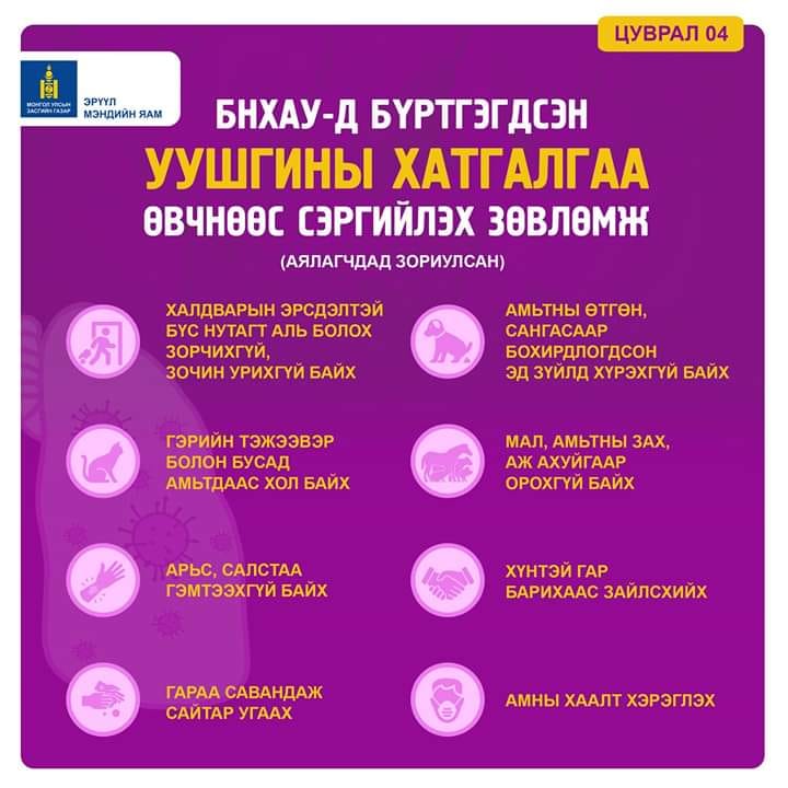 ДЭМБ нь аялагчдад тусгайлсан арга хэмжээ авах зөвлөмж өгөөгүй болно. Мөн одоогийн байдлаар байгаа мэдээлэлд тулгуурлан БНХАУ-д аялал жуулчлал, худалдааны хязгаарлалт тавихгүй байхыг зөвлөж байна.