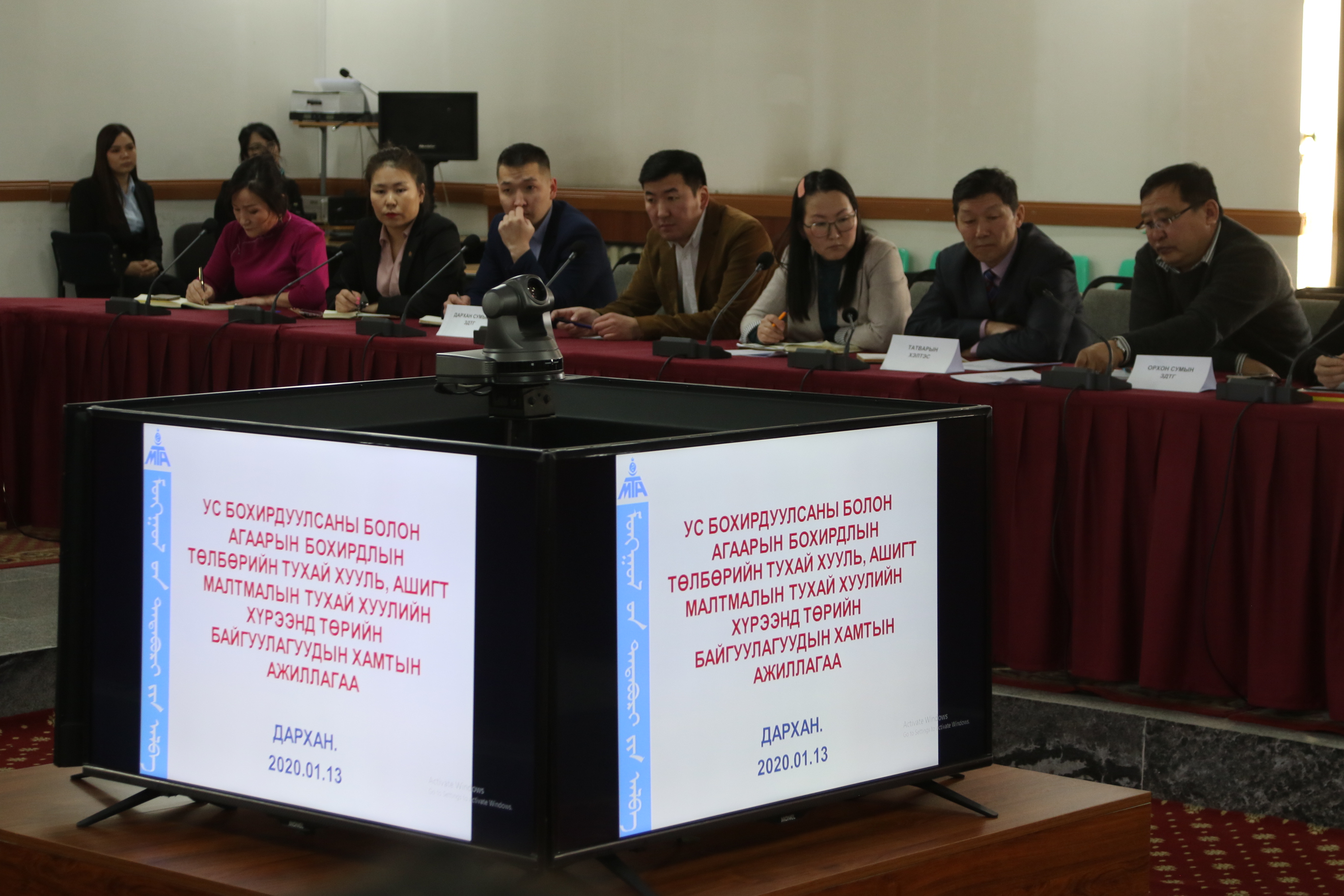 Ус бохирдуулсаны болон Агаарын бохирдолын төлбөрийн тухай хууль, Ашигт малтмалын тухай хуулийн хүрээнд төрийн байгууллагуудын хамтын ажиллагаа уулзалт хэлэлцүүлэг өнөөдөр /2020.01.13/ аймгийн ЗДТГ-ын хурлын танхимд болов.