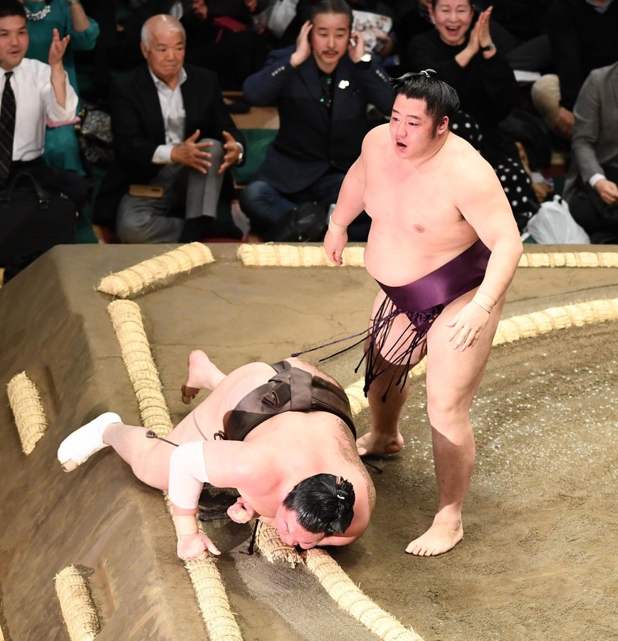 Хоёр озэки ч өнөөдөр өвдөг шороодлоо. Такакэйшёо Хокүтофүжид, Гоэйдо Митакэүмид унасан байна.