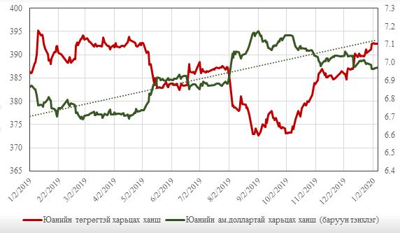 Улмаар 2019 онд төгрөгийн юаньтай харьцах ханш ам.долларын ханшаас арай бага буюу 2.1 хувиар суларсан байна. Түүнчлэн юанийн эрэлтийн ихэнхийг бүрдүүлдэг жижиглэн худалдааны импорт цагаан сарын баярын үеэр нэмэгддэг бөгөөд Монголбанкнаас гадаад валютын захад шаардлагатай тухай бүр оролцон ажиллах зарчмыг баримтлан ажиллаж байна гэв.