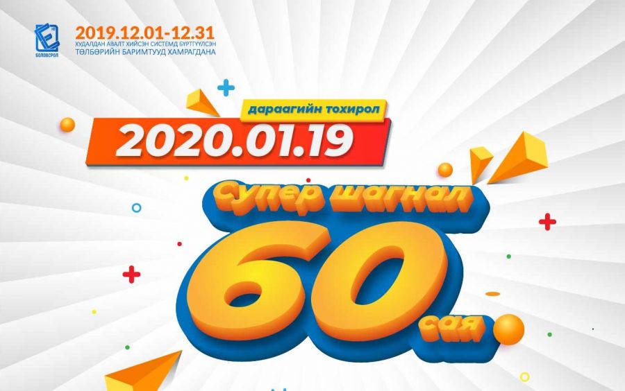 НӨАТ-ын урамшууллын сугалааны ээлжит тохирол маргааш буюу энэ сарын 19-ны ням гаригт болно. Уг сугалаанд 2019 оны 12 дугаар сарын өнгөрсөн сарын 01-30-ны өдөр хүртэлх хугацаанд иргэдийн худалдан авалт хийсэн баримтууд хамрах юм. Өнгөрсөн сарын баримтуудыг энэ сарын 8-наас өмнө Цахим төлбөрийн баримтын систем буюу ebarimt.mn-д бүртгүүлсэн юм. Энэ удаагийн тохирлын Супер шагнал 60 сая төгрөг байна. Энд сануулахад, иргэдийн 2019 оны худалдан авалтын НӨАТ-ын урамшууллыг ирэх сард олгохоор ажиллаж байгааг татварын байгууллага мэдээлсэн юм. Урьдчилсан тооцооллоор 139 тэрбум төгрөгийн урамшууллыг 900 мянга орчим иргэнд олгохоор байна.