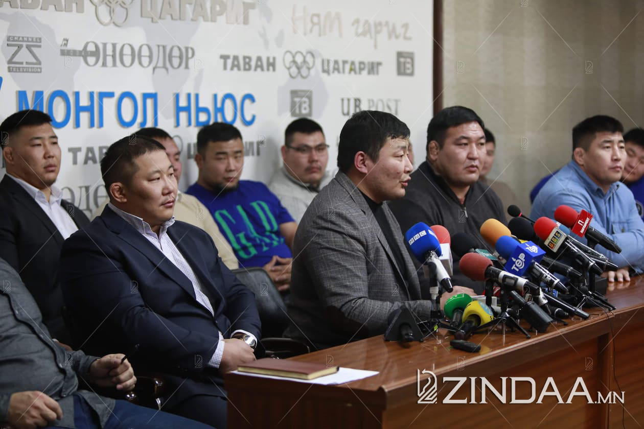 Улсын аварга Ч.Санжаадамба тэргүүтэй бөхчүүд "Монгол ньюс" мэдээллийн төвд мэдээлэл хийлээ.