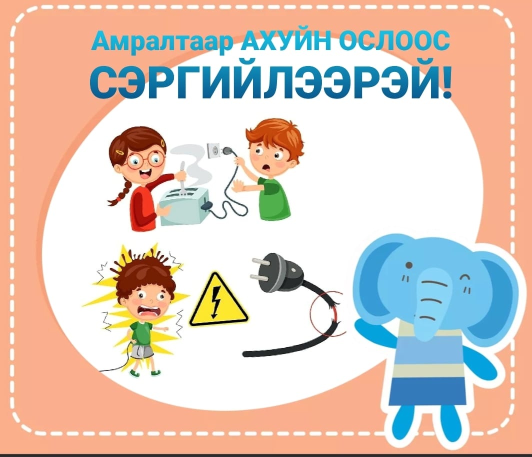 • Ихэнх цахилгааны осол нь буруу холбосон болон ил задгай цахилгааны утаснаас үүсдэг. Мөн цахилгаан хэрэгслүүдийг уснаас хол байлгах хэрэгтэй. Хэрвээ тэр норсон, чиний гар нойтон байвал бүү харьц.