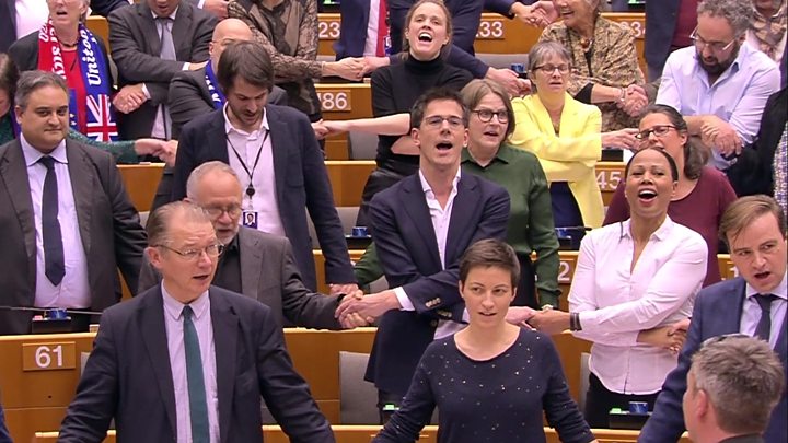 Санал хураалтын дараа Европарламентын гишүүд Шотландын “Auld Lang Syne” үдэлтийн дууг дуулж, Их Британийг үдэн гаргав. Энэ дууг англи хэлтэй орнуудад шинэ жилийн битүүний өдөр, төгсөлтийн баяр, аливаа арга хэмжээний төгсгөлд дуулдаг уламжлалтай.