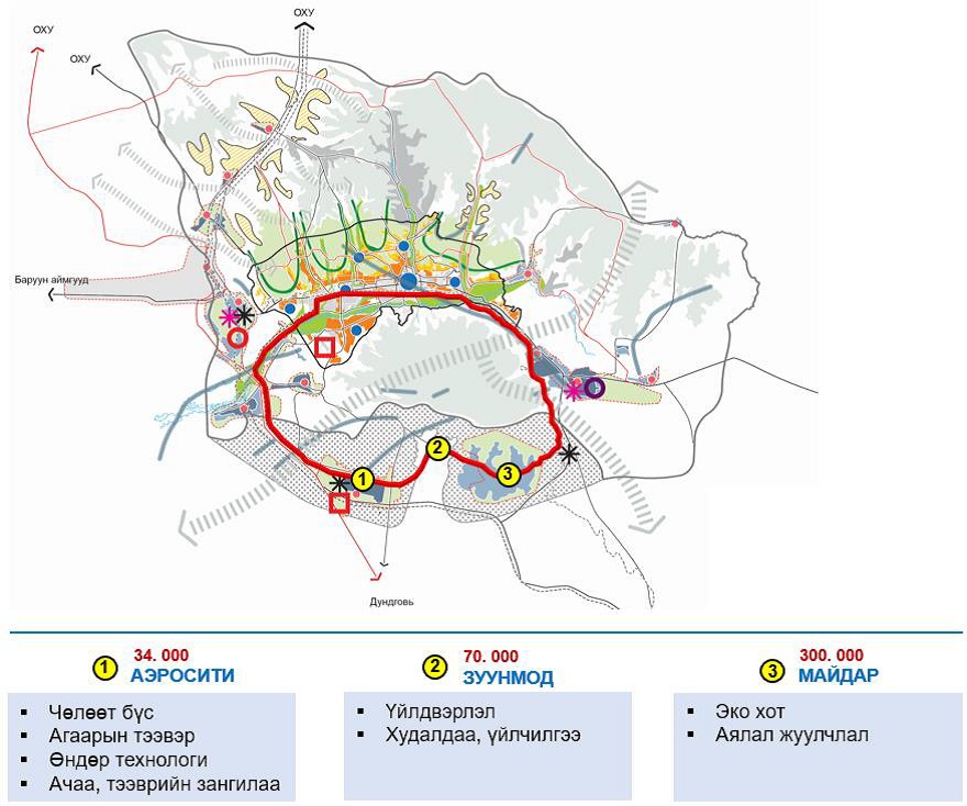 Улаанбаатарыг дагуул хотуудад салбарлуулан, төвлөрлийг бууруулах бодлого нийтийн эрх ашгийн үүднээс хийгдэж буй стратегийн төлөвлөгөө гэж ойлгогдож байгаа. Үндсэндээ хорь гаруй жилийн турш хийж хэрэгжүүлж чадаагүй дагуул хотын төслүүд бол манайхны хувьд шаардлагатай санхүүжилт болон шанг нь татаж үзээгүй орчин үеийн шийдэл гэдэг утгаараа мега ангилалд багтана. Гэхдээ өнөөдрийн Улаанбаатарын орчны бохирдол, хүн амын нягтралаас үүдсэн уур бухимдал, эдийн засгийн түгжрэл дагуул хотууд бүтээхийг шаардаж байна. Дагуул хотуудын төслүүд одоогоор ганц нэг бүтээн байгуулалтаас өөрөөр нүдэнд торох зүйлгүй л хээр талд хэрэгжиж байгаа. Цаасан дээр зурснаас япончууд Хөшигийн хөндийд шинэ нисэх онгоцны буудал сүндэрлүүлсэн бол түүнд түшиглэн зурагдсан Аэросити хүрэх замыг нь хятадууын гараар тавьсан. Майдар эко хотын сууринд шавар бурхны барилгын ажил өрнөж, муруй асфальтан зам салаалуулсан байна лээ. Энэ хоёр хот төлөвлөлтийн дунд орших Төв аймгийн төв Зуунмод урьдынхаа адилаар сүүмийсэн хэвээр. Одоогоор яригдаж буй Улаанбаатарыг дагуулахаар төлөвлөж буй гурван суурьшил бол эдгээр юм.