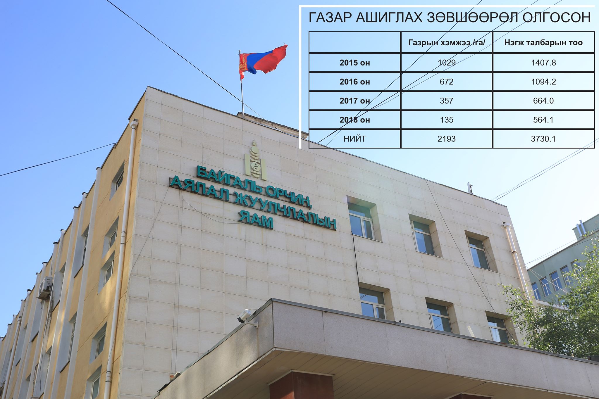 Зөвхөн БОАЖ-ын сайдын эрх мэдлийн хүрээнд олгогдсон газруудад аудит хийхэд ийм олон зөрчил, магадгүй хууль зөрчин газар наймаалцсан асуудал илэрч байна. Улсын хэмжээнд 2015-2018 онд өрнөсөн газар олголттой холбоотой зөрчлийг нэгтгэхэд, 162.3 тэрбум төгрөгөөр үнэлэгдсэн. Үүний 75.4 тэрбум төгрөгт акт тогтоож, 78 тэрбум төгрөгийн зөрчил бүхий 449 байгууллага, албан тушаалтанд албан шаардлага хүргүүлж, зургаан хэргийг хууль хяналтын байгууллагад шилжүүлсэн гэж Ерөнхий аудиторын орлогч С.Бүрэнбат тоо баримттай нь танилцуулсан.