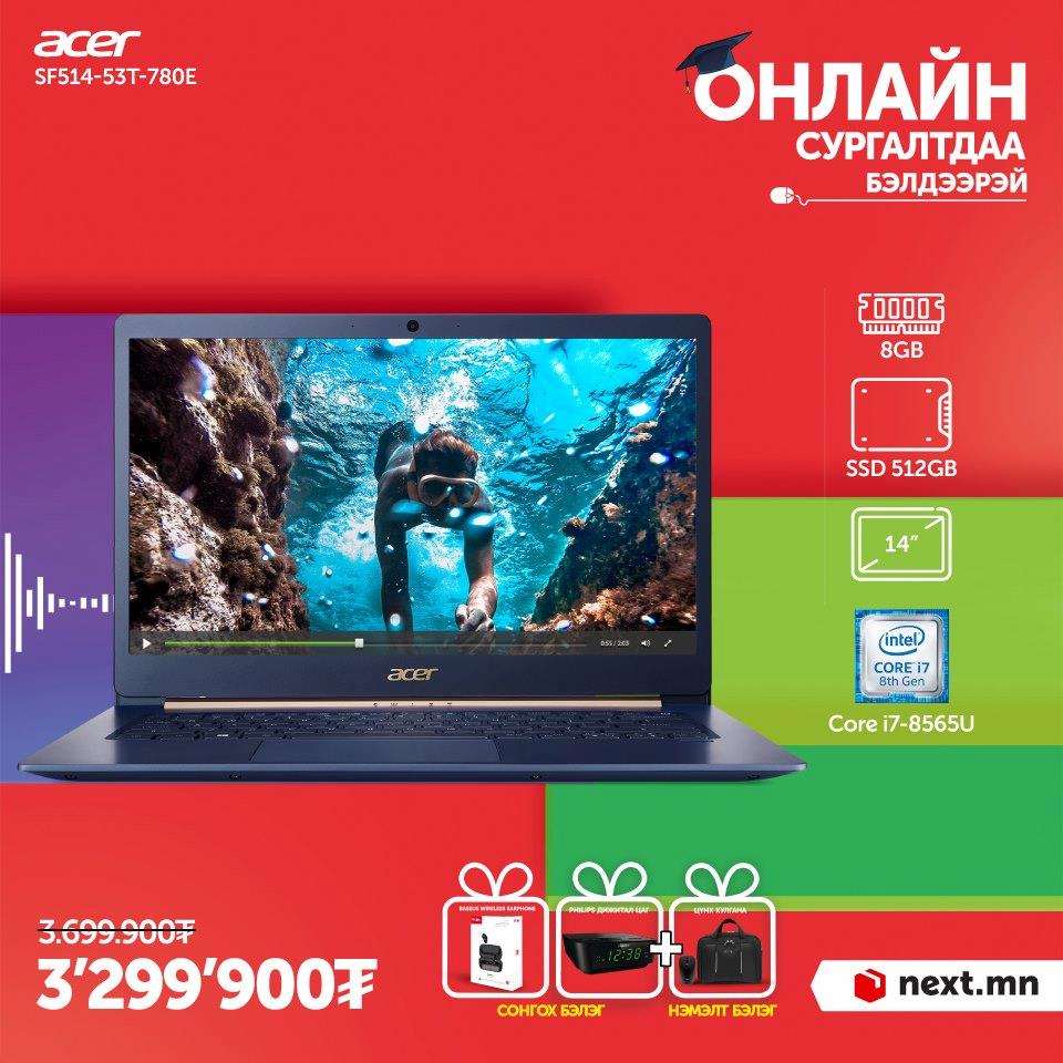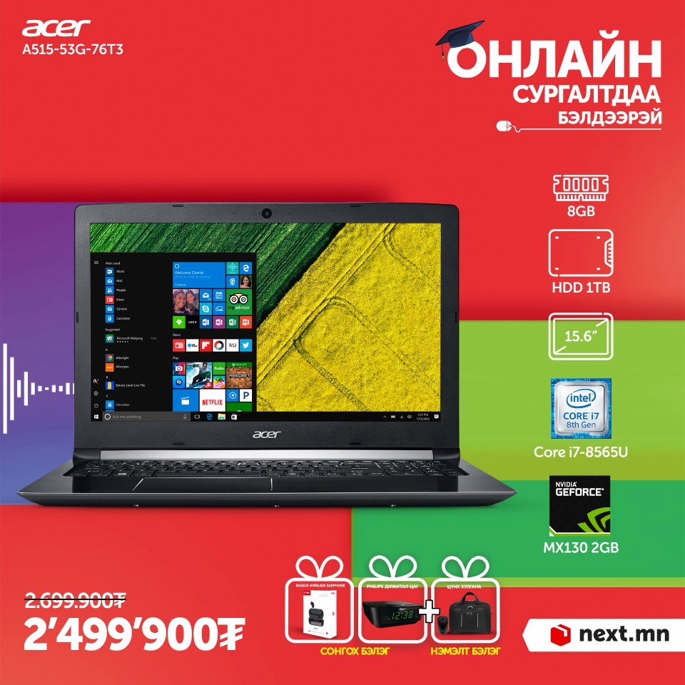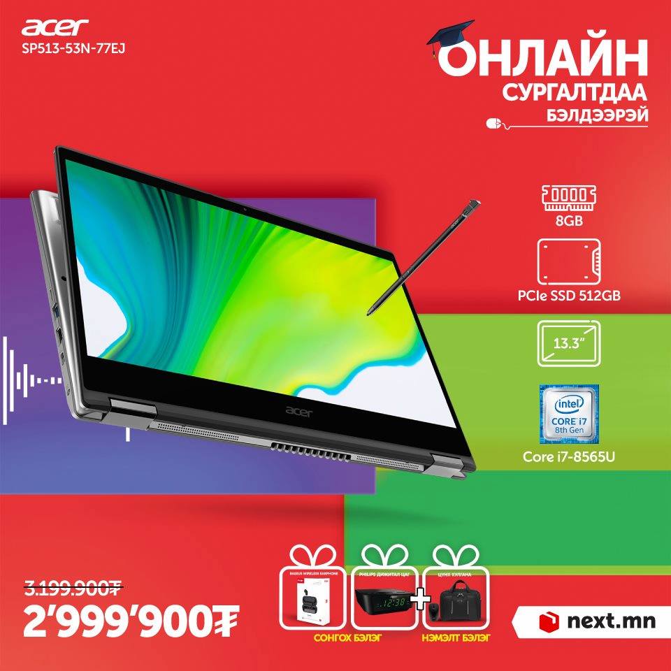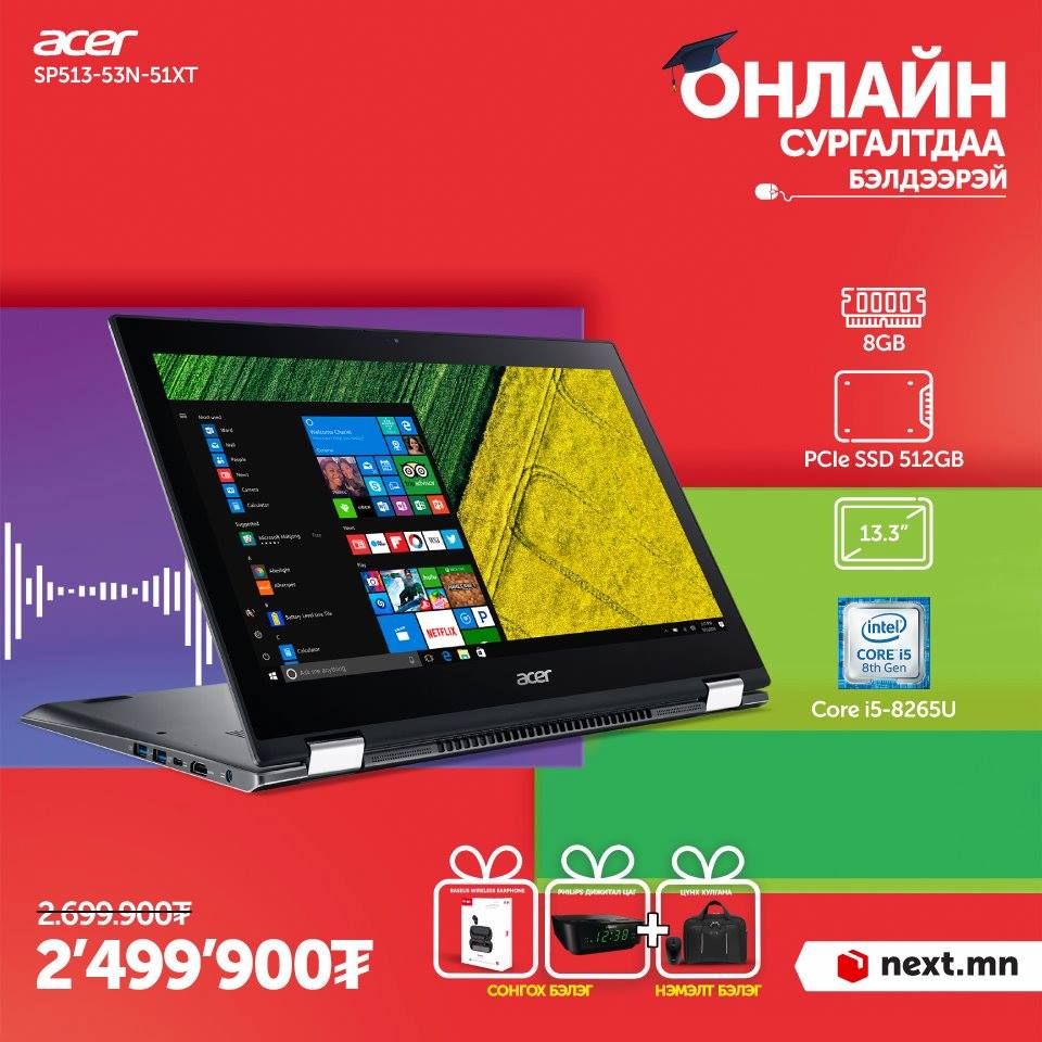 Та Next.mn сайтаас эсвэл Улаанбаатар хотын аль ч салбарт очоод Laptop авсан хэрэглэгч бүрд цүнх, mouse-г дагалдуулан бэлэглэж байна. Мөн Acer laptop, өнгөт принтэр, монитор авсан хэрэглэгч бүрдээ Bluetooth чихэв, дижитал радио цагнаас сонгож авах боломжийг олгож байна.
