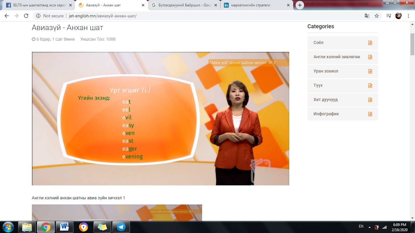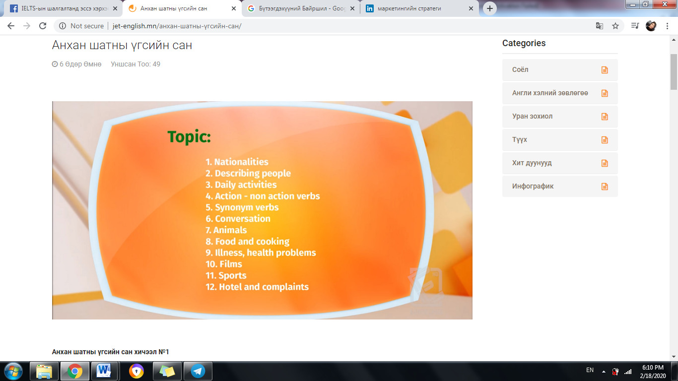 • Англи хэлний анхан шатны үгсийн сангийн хичээлийг дараах 2-линкээр дамжин үзээрэй.