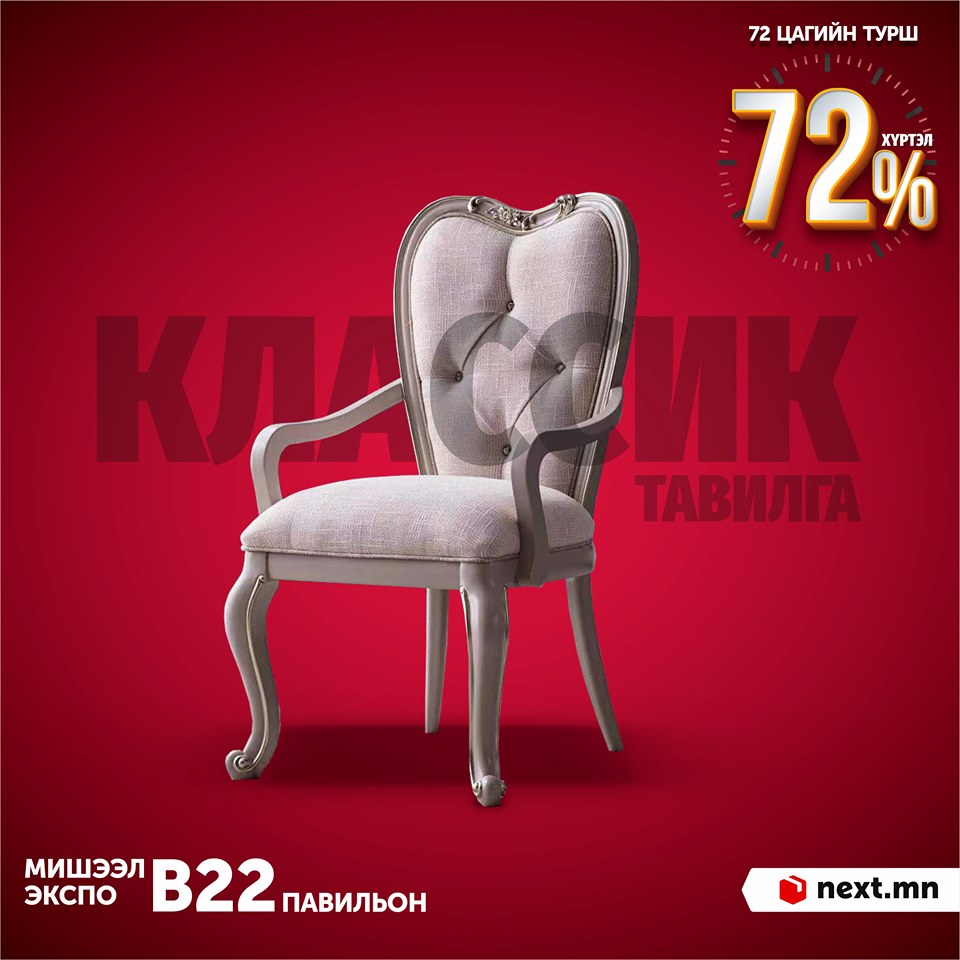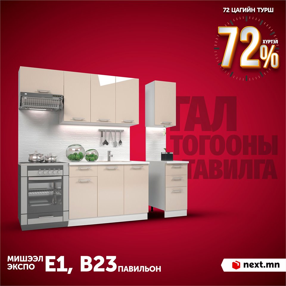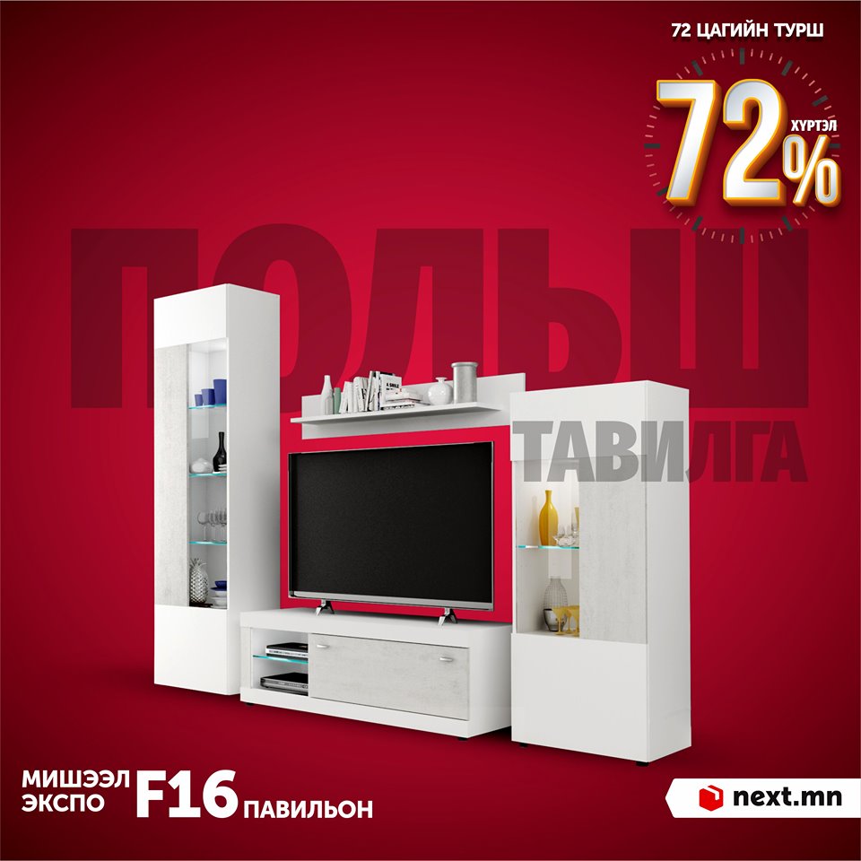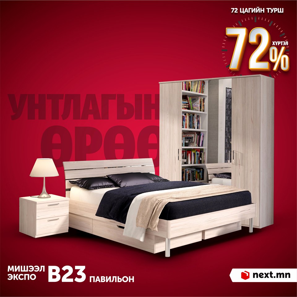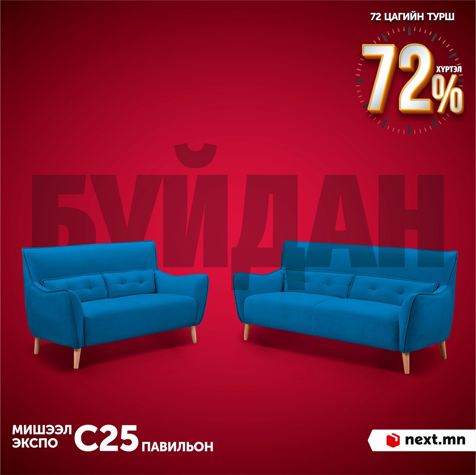НЭКСТ Мебель тавилгын их дэлгүүр 2020 оны 02 сарын 20-оос 22-ыг хүртэл сонгогдсон гэр ахуйн тавилгууддаа 72 цагийн турш 72 хувь хүртэл хямдрал зарлаж байгаа юм.