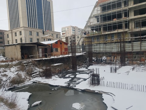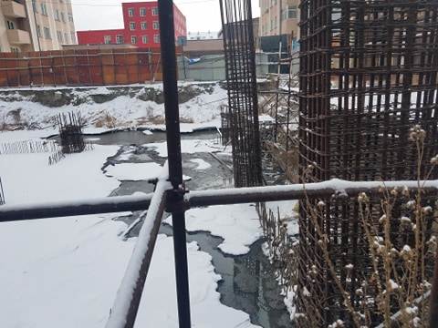 Сүхбаатар дүүргийн VII хороо, Денверийн гудамж, XII А, Б байрны дэргэд, Сүхбаатар дүүргийн Засаг даргын Тамгын газрын байрны зүүн талд баригдаж буй барилгын сууриас бохир алдагдаж эхэлжээ.