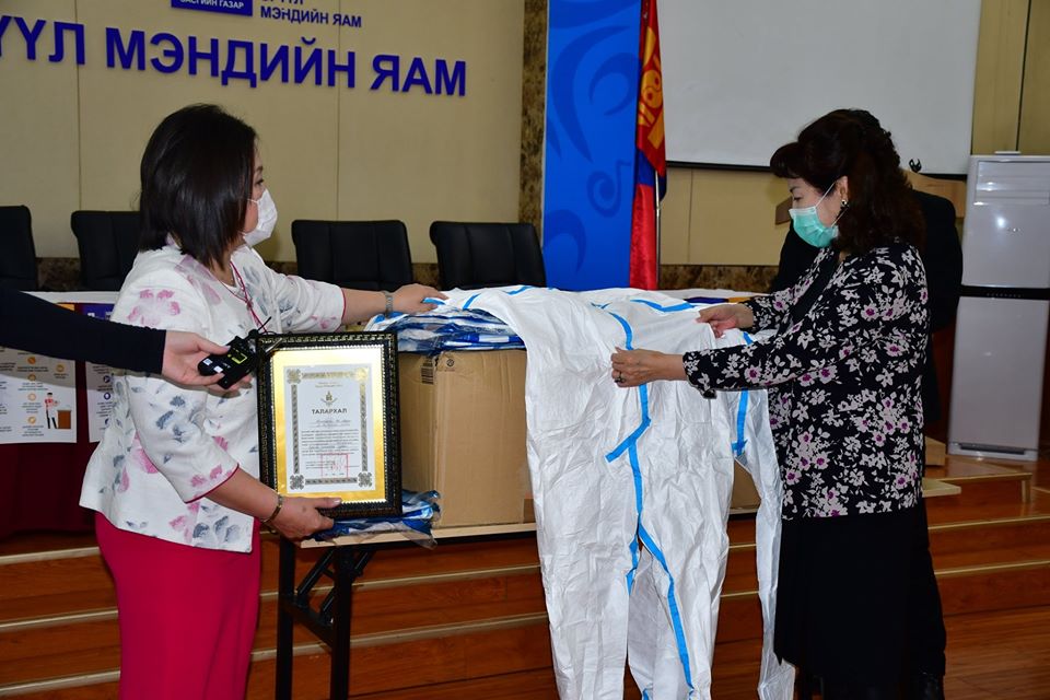 Мэргэжлийн сүмо бөхийн 68 дахь Их аварга, Хөдөлмөрийн баатар, Гавьяат тамирчин Д.Дагвадорж онц ноцтой халдварын үед хэрэглэх олон улсын чанарын шаардлага хангасан 400 ширхэг хамгаалалтын битүү хувцас хэрэглэлийг Эрүүл мэндийн яаманд хандивласныг өнөөдөр /2020.02.20/ хүлээлгэн өглөө.