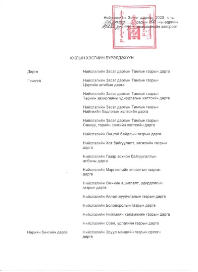 • Шинэ коронавирусын халдварт өвчнөөс урьдчилсан сэргийлэх, илэрсэн тохиолдолд хариу арга хэмжээ авах зорилгоор нийслэлийн нутаг дэвсгэрт байгаа амралт, сувиллын газрын судалгааг гаргах ажлын хэсгийг байгуулах,