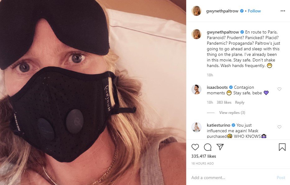 “Сандрал, сэрэмж, түгшүүр, хүлээц, тархалт, суртал ухуулга. Аюулгүй байдлаа сахь, бусадтай гар бүү барь, гараа байнга ариутга” гэж нэрт жүжигчин Гвинет Пэлтроу инстаграм хуудастаа нийтэлсэн байна.