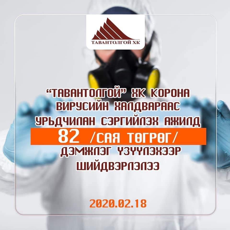 Мөн компанийн ТУЗ-ийн шийдвэрээр Өмнөговь аймгийн Онцгой комисст 82 сая төгрөгийн дэмжлэг үзүүлсэн билээ. Санал хэлэхэд, зайнаас халуун үздэг багажийг сумдын нийт эмнэлэг, сургууль, цэцэрлэг, тамгын газарт аваад өгчихвөл зүгээр дээ. Бид хамтдаа ялна. Дэлхий даваад гарна хэмээжээ.