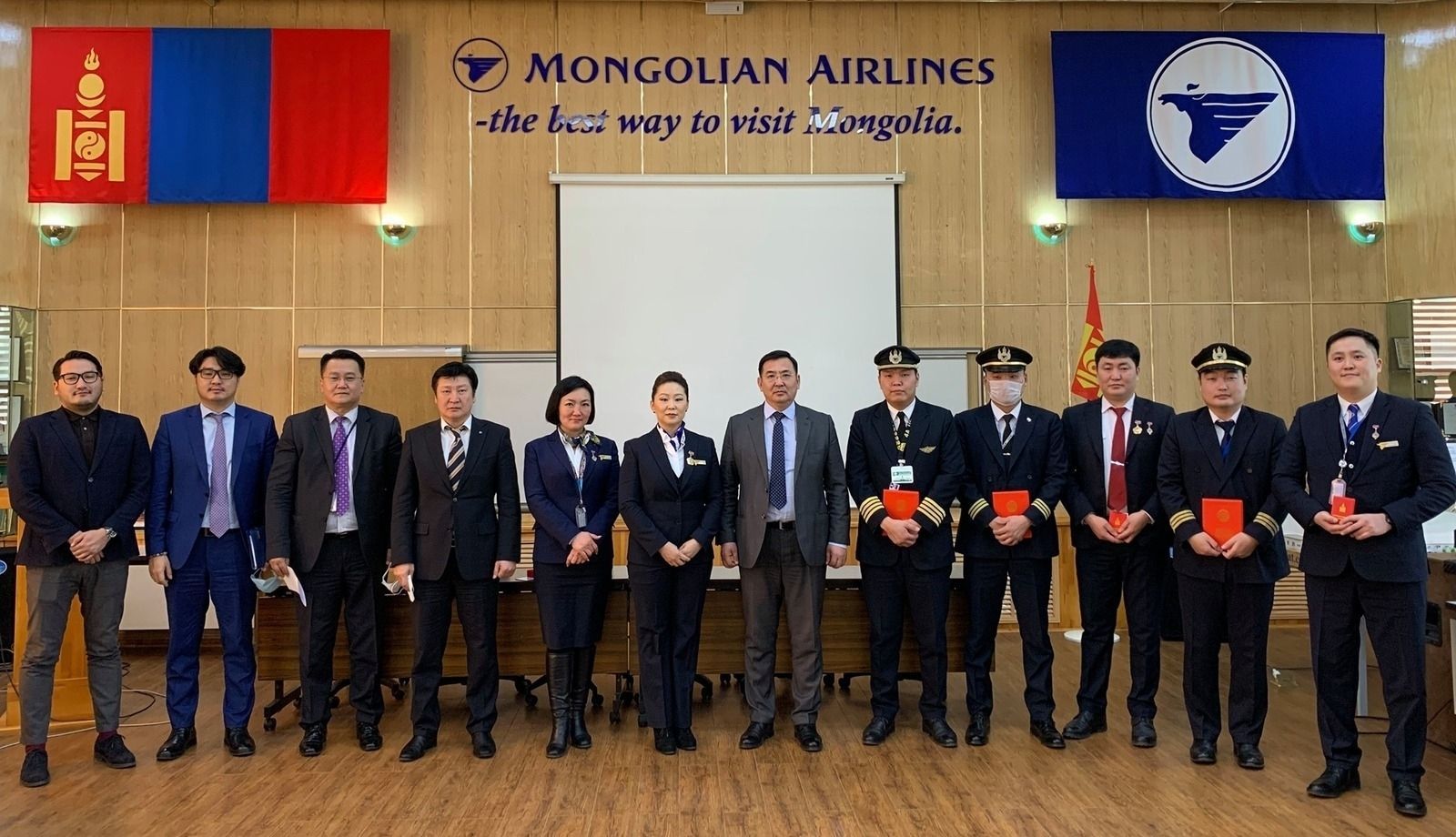 Зам, тээвэр хөгжлийн сайд Б.Энх-Амгалан COVID-19 вирусийн халдварын голомт БНХАУ-ын Ухань хотод хөл хорионд орсон монгол иргэдийг эх орондоо авчрах шийдвэрийг амжилттай биелүүлсэн МИАТ ТӨХК-ийн Г.Баатарцогт даргатай нисэх баг бүрэлдэхүүнийг зам тээврийн салбарын шагналаар шагнаж, урамшууллаа.