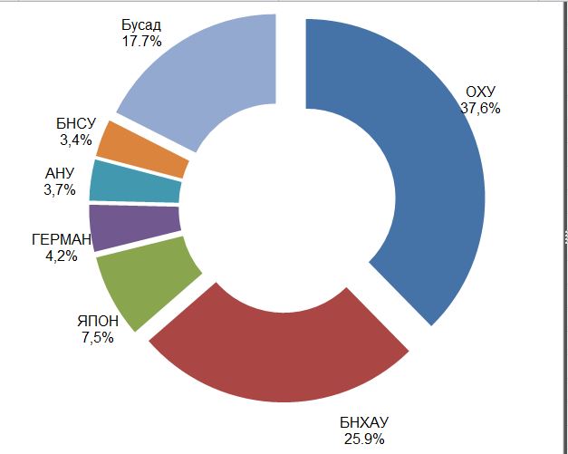 Олон улсын санхүү эдийн засгийн байгууллага, хандивлагч орны зээлээр 19.9 сая ам.долларын барааг тус улсад нийлүүлснээс барааг гарал үүслийн улсаар нь авч үзвэл: