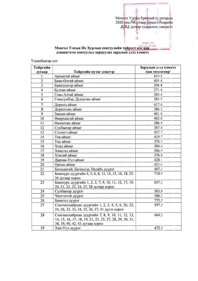 Улсын Их хурлын сонгуулийн тойрогт нэг нэр дэвшигчээс сонгуульд зарцуулах зардалын доод болон дээд хэмжээг хуульчилсан билээ.