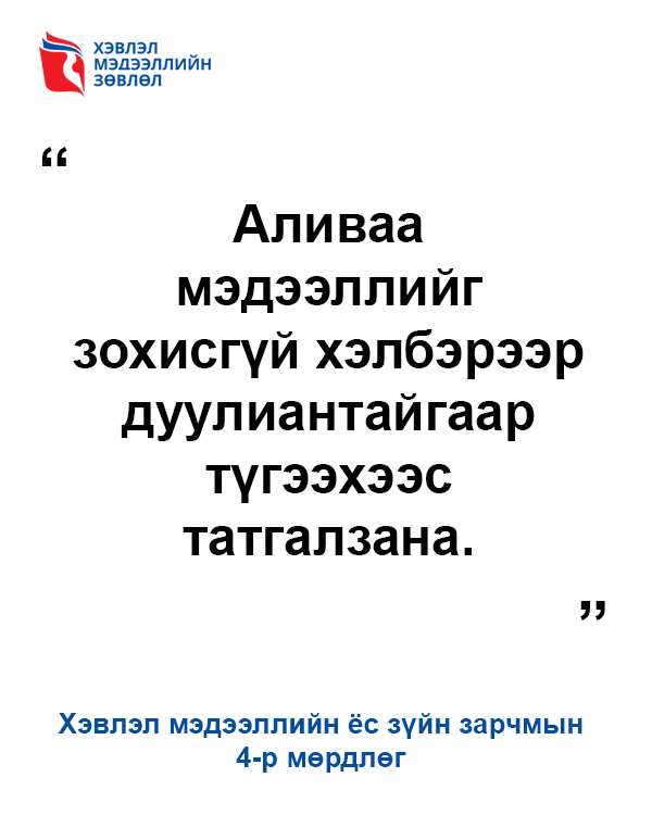 Хэвлэл мэдээллийн зөвлөлөөс Хэвлэл мэдээллийн ёс зүйн зарчмын мөрдлөгийг цувралаар хүргэж байна.