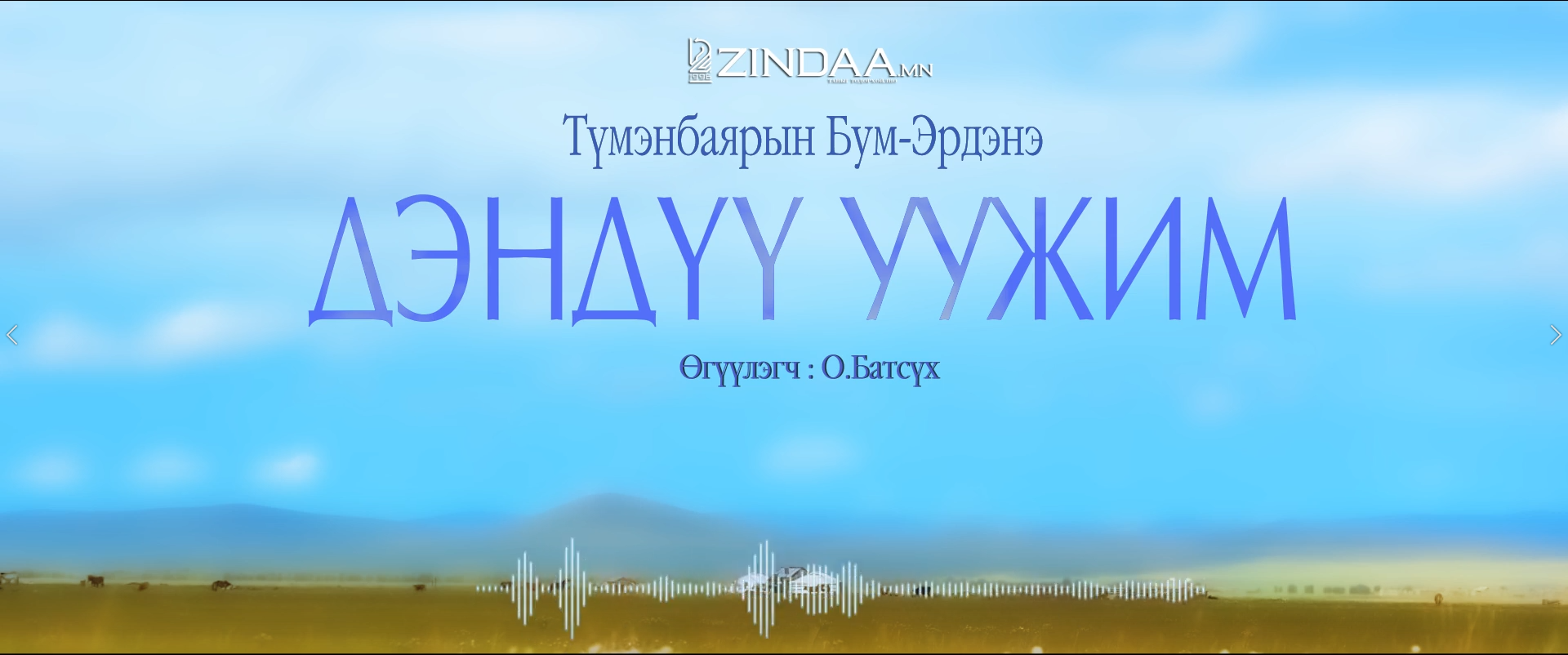 Zindaa.mn энэ удаагийн аудио зохиолоор МЗЭ- ийн шагналт зохиолч Т.Бум-Эрдэнийн "Дэндүү уужим." өгүүллэгийг сонсогч танд хүргэж байна.
