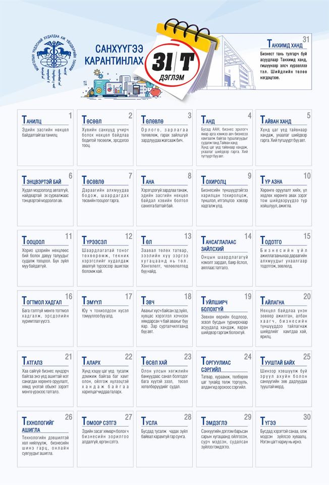 Хорио цээрийн үед санхүүгийн сахилга батаа сайжруулах сарын дэглэмийг МҮХАҮТ-аас гаргажээ. “31/Т” дэглэмийг танилцуулъя.