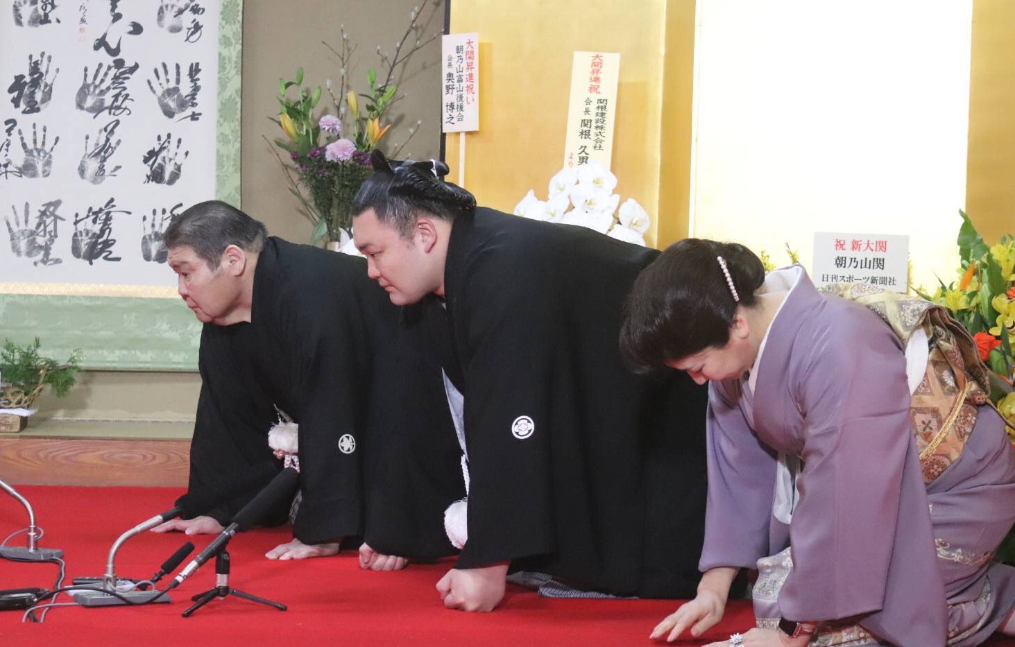 Сүмогийн холбооны тэргүүн Хаккакү “Асанояма тун сайн итгэлтэй барилдаж байгаа. Цаашдаа дохёнд гарахаараа чөтгөр болсон мэт дайчин, эрчтэй барилдаж, амьдралаа сүмо бөхөд зориулаасай гэж хүсэж байна” гэж шинэ озэкид итгэл хүлээлгэжээ.