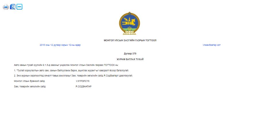 ЗАСГИЙН ГАЗРЫН 2018 ОНЫ 379 ДҮГЭЭР ТОГТООЛ