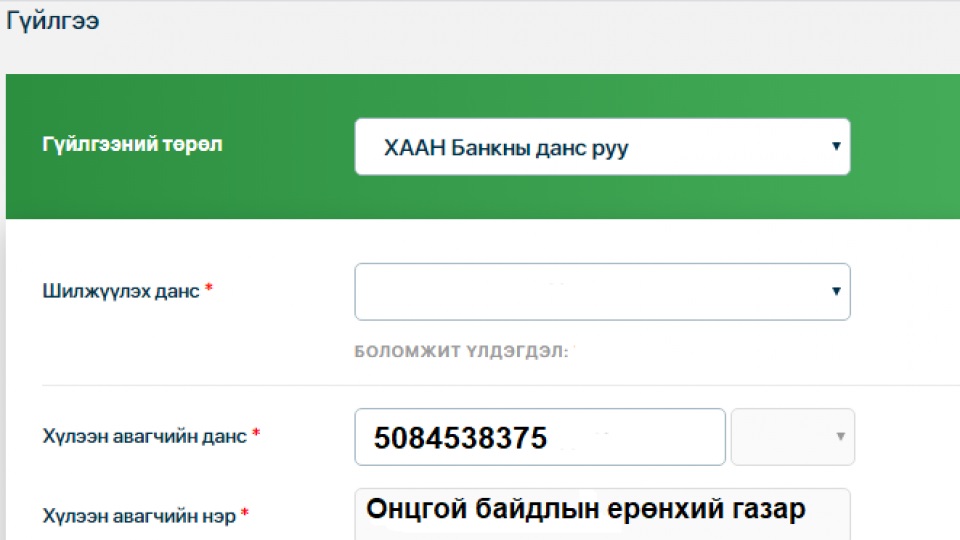 Төлбөр хийхдээ тухайн иргэний ОВОГ, НЭР, РЕГИСТРИЙН ДУГААР болон БАЙРНЫ ТӨЛБӨР гэдгийг заавал тодорхой бичихийг анхаарна уу.
