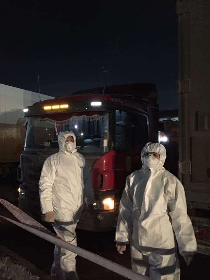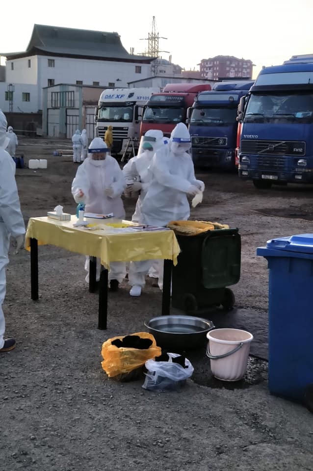 ОХУ-аас 2020 оны гуравдугаар сарын 29-ний өдөр тээвэрлэж ирсэн 22 ачааны машин бүхий хүнсний бүтээгдэхүүнийг Интердисижн, Техник импорт ХХК-ний гүний гаалийн бүсэд буулгахад ариутгал халдваргүйжүүлэлт хийж, бүтээгдэхүүний хадгалалт тээвэрлэлт, болоод бичиг баримтын хяналт шалгалт хийж байна.