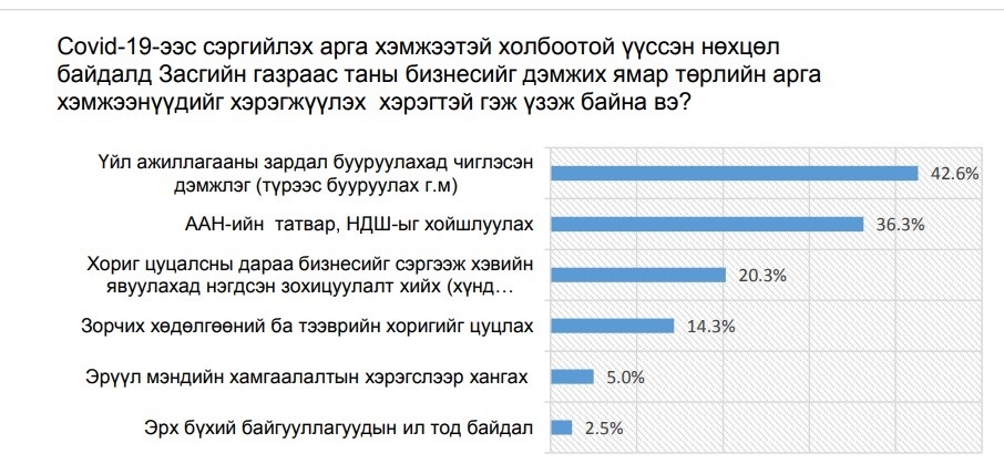 Судалгааны нэгдсэн дүгнэлтээс сонирхуулахад, түрээслүүлэгч компаниудын орлогын албан татварын төлөлтийг тодорхой хугацаагаар хойшлуулах санал гарсан байгаа юм. Түүнчлэн газрын төлбөр өссөнөөс өмнө нь 97 сая төгрөг төлдөг байсан аж ахуйн нэгж 300 сая төгрөг төлдөг болсныг дурджээ.