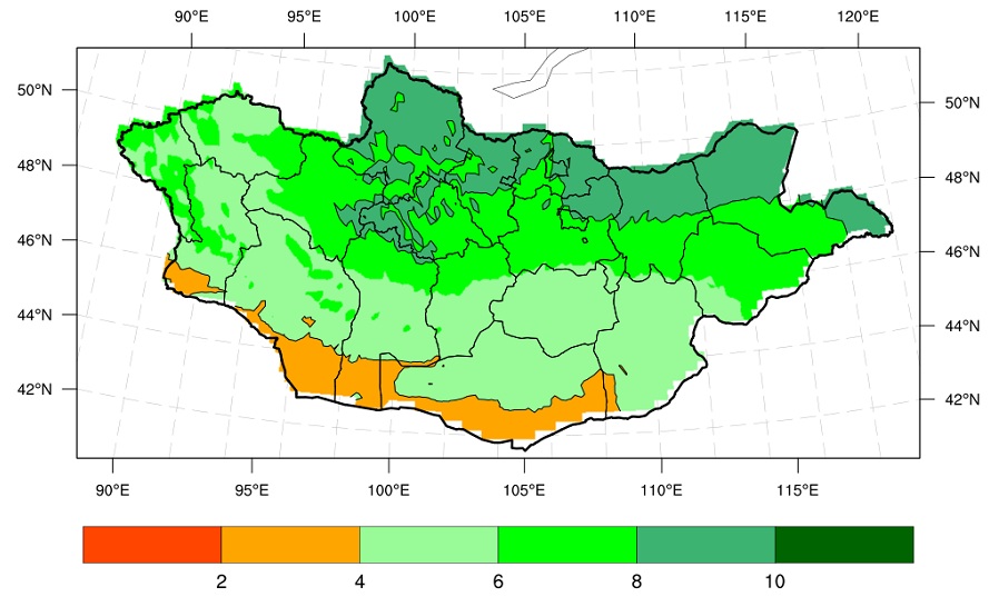 Энэ сард орох хур тунадас нь Өмнөговийн ихэнх нутгаар, Дорноговь аймгийн өмнөд хэсгээр хур тунадас олон жилийн дунджаас ахиу, бусад нутгаар дунджийн орчим байх төлөвтэй.
