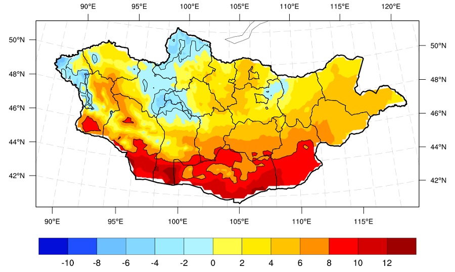 Төвийн аймгуудын нутгаар. Энэ сарын агаарын дундаж температур олон жилийн дунджаас дулаан байх төлөвтэй.