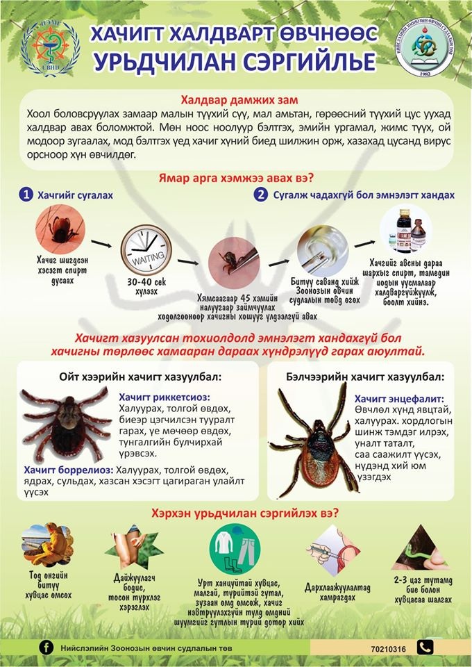 1. Иргэд хачгийн идэвхжлийн үед буюу 4-10 дугаар сард биедээ, ялангуяа толгойн үстэй хэсэгт хачиг орсон эсэхийг өдөр тутамд шалгаж байх;