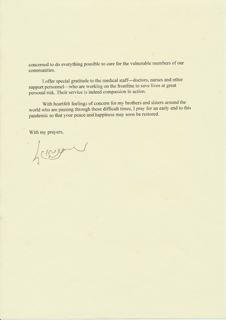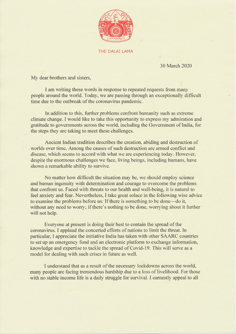 Энэхүү хүнд хэцүү цаг үеийг туулж буй дэлхийн өнцөг булан бүрт байгаа ахан дүүсийнхээ төлөө чин сэтгэлийн угаас санаа зовнин, энэ тахал өвчин эртхэн эцэслэж, амар амгалан, аз жаргал тань эргэн сэргэх болтугай хэмээн залбирч байна