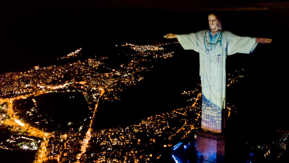 Шинэ төрлийн коронавирусний эсрэг тэмцэж буй баатарлаг эмч, эмнэлгийн ажилтнуудтай эв санааны нэгдлийн илэрхийлэл болгон Бразилын Рио-де-Жайнеро хотын Корковадо уулан дахь Аврагч Христийн хөшөөнд эмчийн цагаан нөмрөг өмсгөжээ.