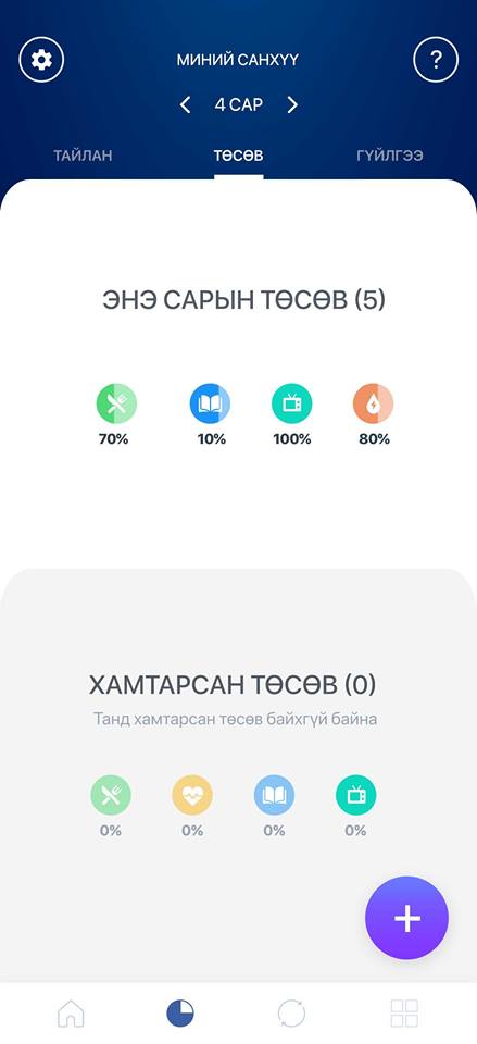 1. Төлөвлөөгүй гэнэтийн худалдан авалт хийх нь биднийг багагүй санхүүгийн хүндрэлд оруулдаг. Тиймээс энэ сард зардлаа хуваарилан боломжит мөнгөн дүнгээрээ төсөв үүсгэн түүндээ тохируулж зарцуулалтаа хийхээр шийдлээ. Ингэснээр хувийн санхүүгийн туслах үүсгэсэн төсвөөсөө хэтрүүлэн зарцуулалт хийж байгаа эсэхийг бидний өмнөөс хянаж, юун дээр төлөвлөснөөсөө илүү зардал гаргаж байгааг анхааруулж байдаг.