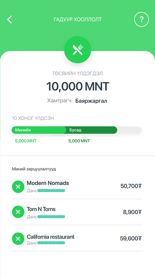 1. Зөвхөн хувийнхаа төдийгүй, хамтарсан төсөв үүсгэн гэр бүлийнхээ өрхийн төсвийг ч мөн хамтдаа хянаарай. Хамтарсан төсөвт хэдэн ч хамтрагч нэмэх боломжтой ба нэр болон регистрийн дугаарыг нь оруулахад л автоматаар хүсэлт илгээгдэнэ. Санхүүгээ хамтдаа хянаж, хэрэггүй зардлаа танан зохистой хэрэглэх илүү амархан болжээ.