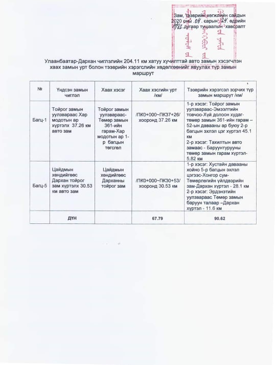Улаанбаатар-Дархан чиглэлийн 204.11 км хатуу хучилттай авто замын их засвар, шинэчлэлтийн ажлыг хэсэгчлэн эхлүүллээ.
