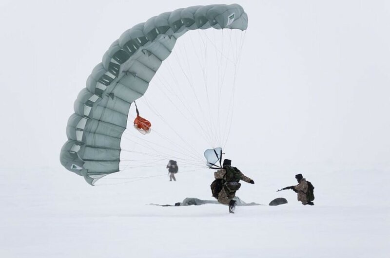 Дэлхийн түүхэн дэх хамгийн анхны десантын багийн бие бүрэлдэхүүн тусгай зориулалт бүхий шүхрийн систем, хүчин төрөгчийн төхөөрөмж ашиглан, Хойд туйлын нөхцөлд 10 км өндрөөс буулт хийлээ гэж ОХУ-ын Батлан хамгаалахын орлогч сайд Юнус-Бек Евкуров мэдээлжээ.