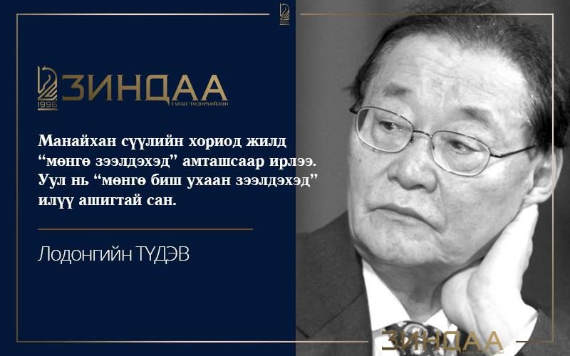 у. Гээд ярьвал цаашаа зөндөө их юм байна. Жирийн иргэний хувиар үзэл бодлоо илэрхийлсэн ч тэр энд бичигчийн комунист үзэл сурталч хандлагаар гөрдсөн ч тэр яриад байх юм бишгүй байна. Гэвч Л.Түдэв агсан хэн байснаас үл хамааран түүний сүнсийг төрлөө олох хором агшиныг хүндэтгэн амаа хамхия. Харин энэ увайгүй комунист эхлэн бичигч, гөрдөн зүтгэгчдийн бүдүүлэг хандлагыг мөнхүү хугацаанд бас тэвчээсэй гэж хүсэж байна. Бид нэг их хуучинсаг үзлээр уллах нь утгагүй ч монгол хүний сахивал зохих наад захын ёс зүй, ёс суртахуун гэж байх ёстойг бүгдээр санацгаая.