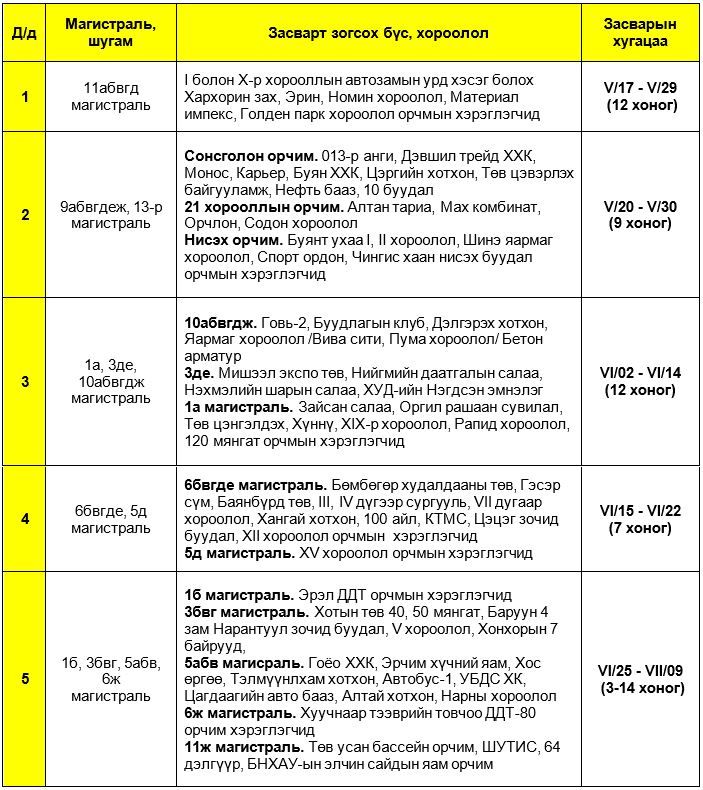 Засвар хийх хуваарийг дахин танилцуулъя.