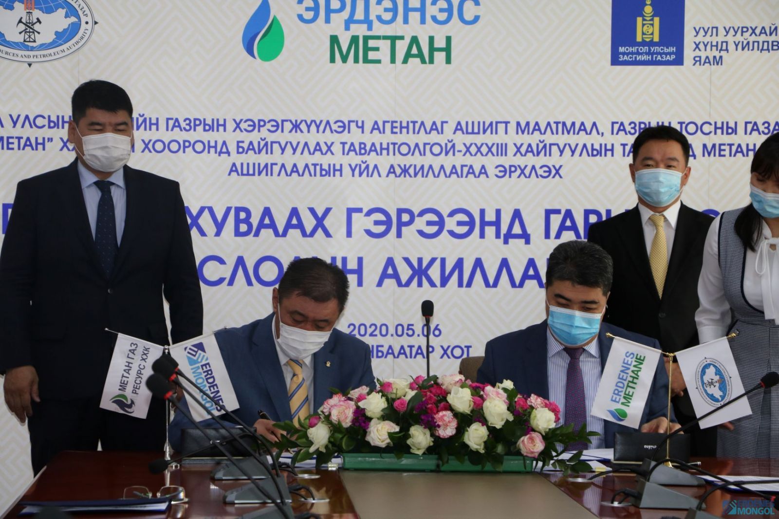 Өнөөдөр (2020.05.06) Тавантолгойн XXXIII хайгуулын талбайд метан хийн хайгуул ашиглалтын үйл ажиллагаа эрхлэх Бүтээгдэхүүн худалдан авах гэрээг байгуулж, АМГТГ-ын дарга Х.Хэрлэн, “Эрдэнэс метан” ХХК-ийн захирал Д.Амар нар гарын үсэг зурлаа.