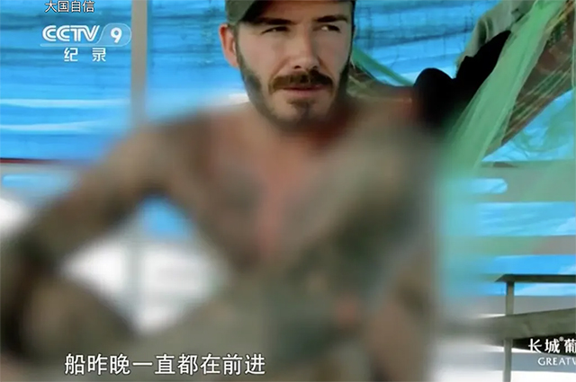 Цензур өндөртэй Хятадад телевизийн дэлгэцээр гаргах зүйл, гаргаж болохгүй зүйл гэж бий. Сүүлийн хэдэн жил шивээстэй дуучин, жүжигчид Хятадын телевизээс хөөгдөөд байгаа билээ. Бекхэмийн киноны зураг авалт халуун Бразилд хийгдсэн тул Дэвид ихэнхдээ цээж нүцгэн, бие нь нэл шивээс.