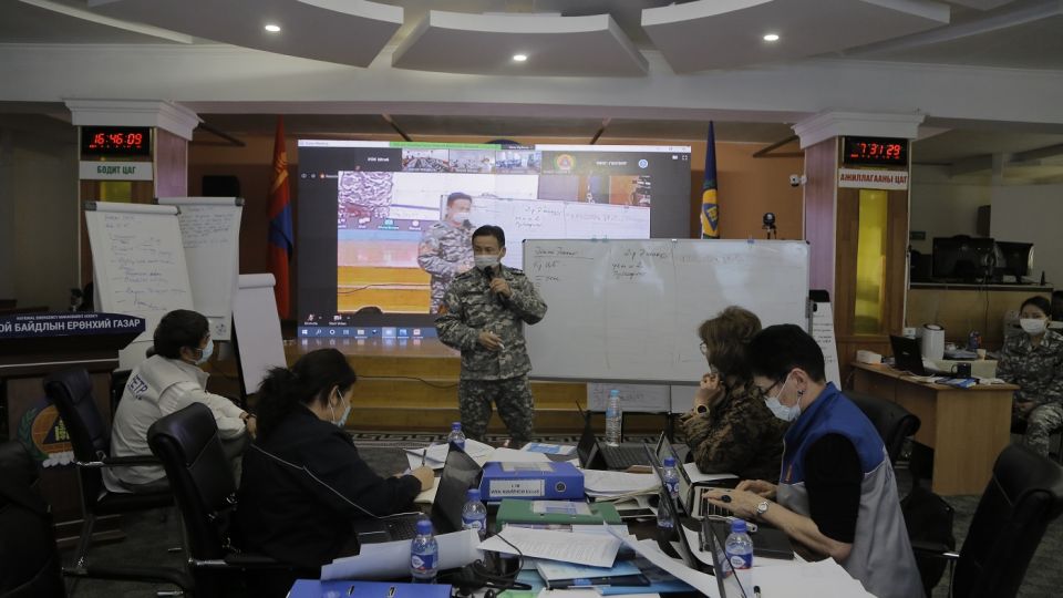 “Ковид-19 халдварт цар тахлын  халдварын үеийн харилцан ажиллагаа, хариу арга хэмжээ” сэдэвт  гамшгаас хамгаалах дадлага сургууль өнөөдөр гурав дахь өдрөө штабын дадлага сургуулиар үргэлжилж байна.