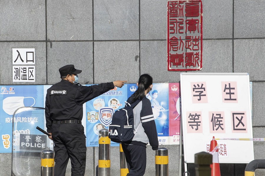 БНХАУ-ын нийслэл Бээжин хотод хөл хорионы дэглэм суларч сургуулиудын хичээл эхлэхтэй холбоотойгоор сурагчдын халууныг ухаалаг бугуйвчаар хэмжиж байна.