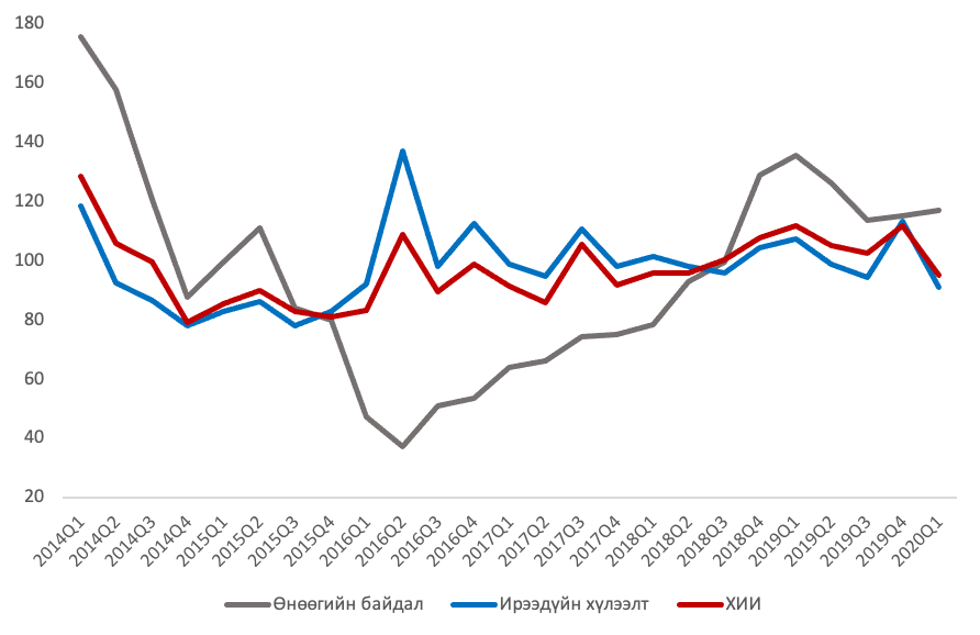 Харин 100-гаас бага бол 2018 онтой харьцуулахад гутранги байгааг, 100-гаас их бол өөдрөг байгааг илэрхийлнэ.
