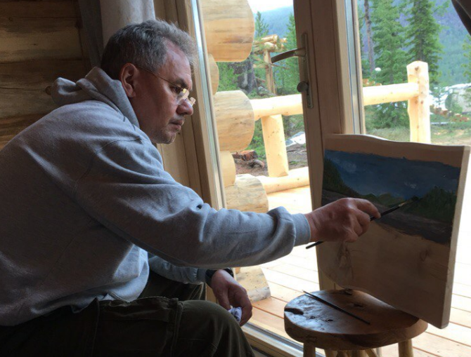 Сергей Шойгу зураач хүн. Мөн сийлбэр хийдэг. Гэртээ урлантай уран бүтээлч.
