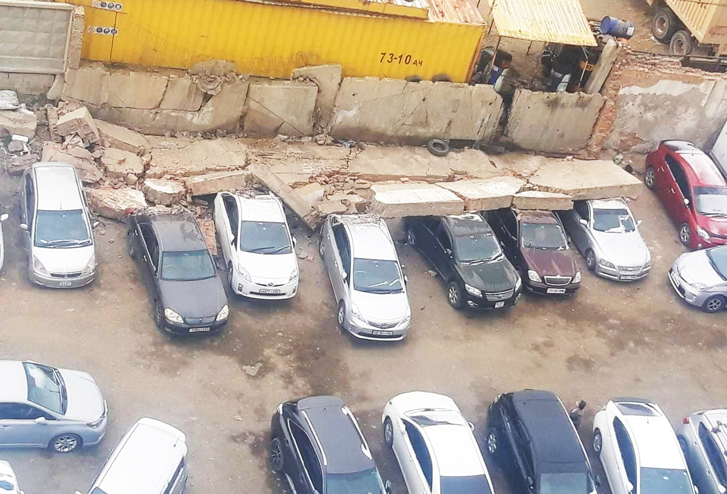 Баянзүрх дүүрэгт баригдаж буй барилгын тоосгон хашаа нурсны улмаас иргэдэд хохирол учирчээ.