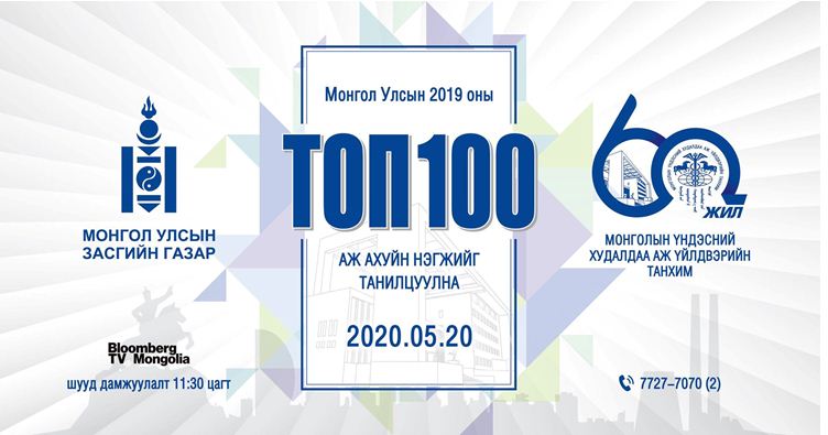 Энэ жил COVID-19 вирусний нөхцөл байдлаас шалтгаалж ТОП-100 аж ахуйн нэгжүүдийг өргөмжлөх, эрэмбийг зарлах арга хэмжээг цахимаар зохион байгуулах бөгөөд маргааш 11:30 цагаас Блүүмберг ТВ-ээр шууд дамжуулах аж.