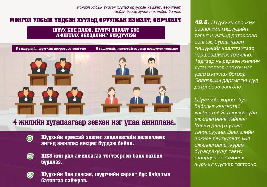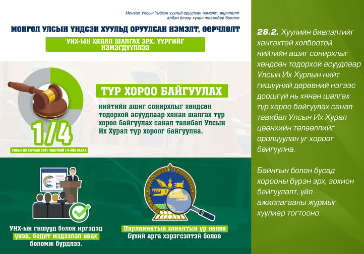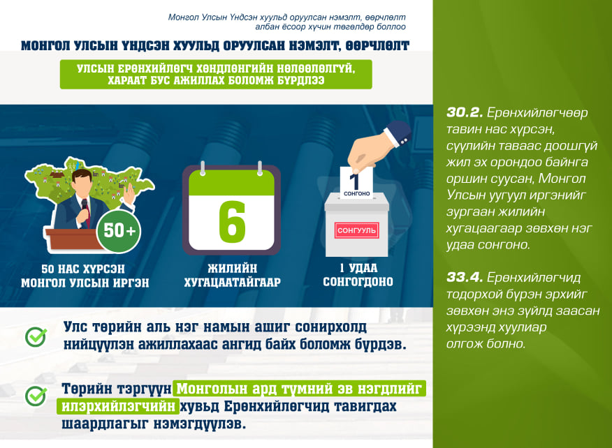 ТАНИЛЦ: Өнөөдрөөс мөрдөж буй ҮНДСЭН ХУУЛИЙН нэмэлт, өөрчлөлт